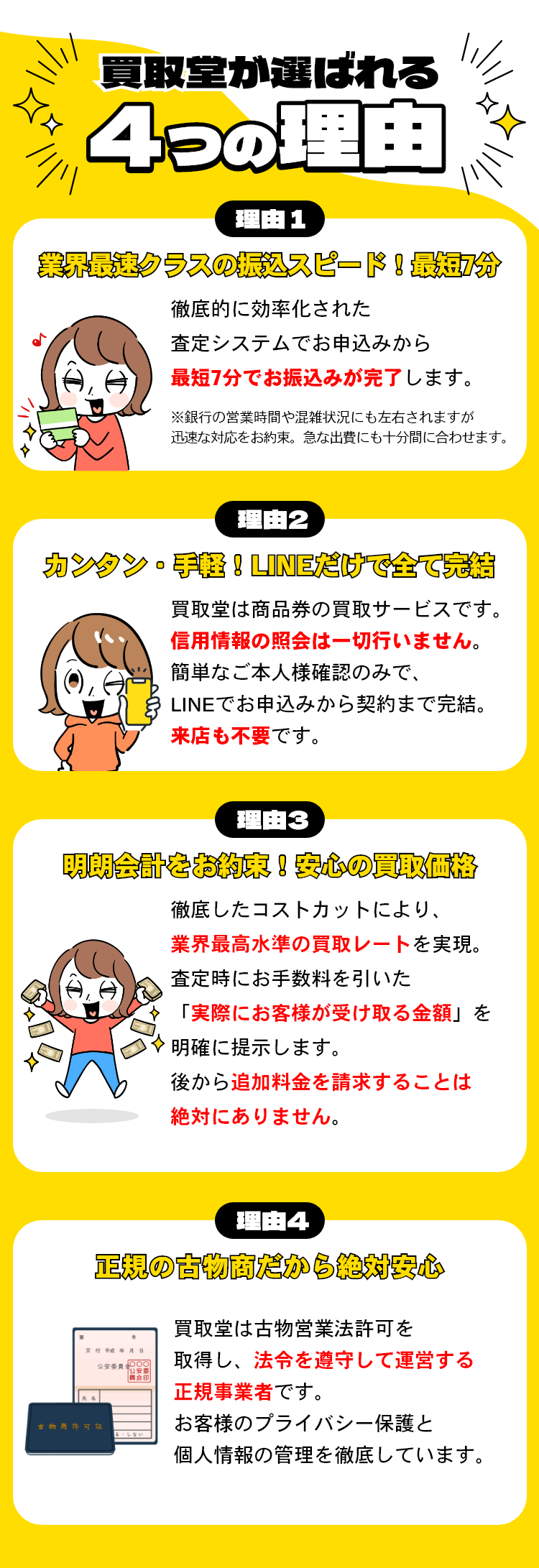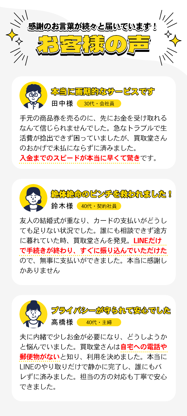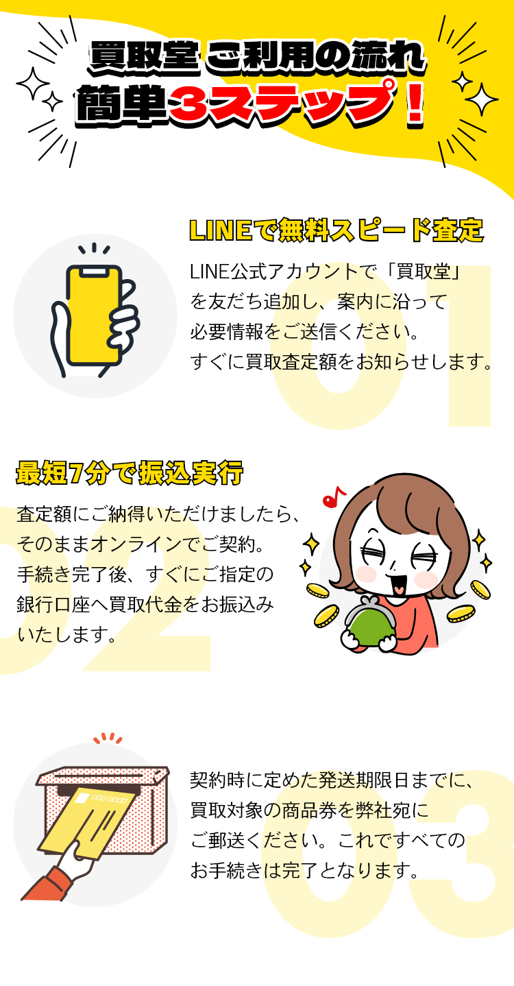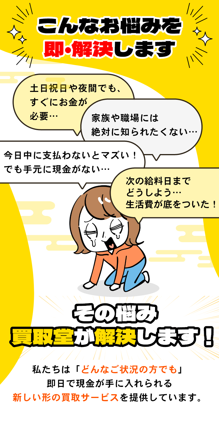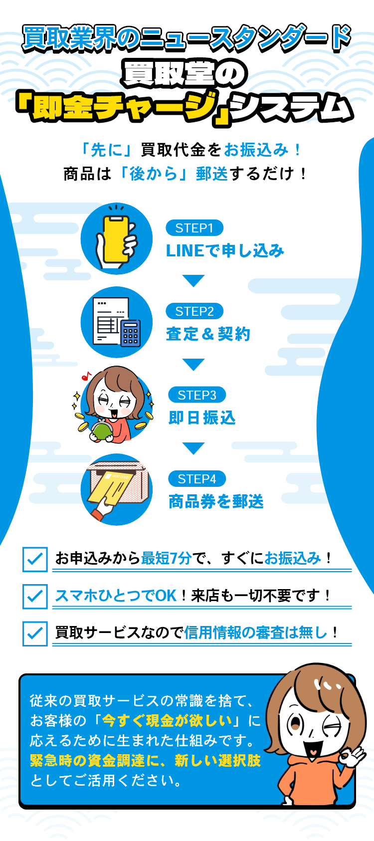特に、先払い買取サービスの場合「身分証明書」および「勤務先情報」のご提示にご協力をお願いいたします。